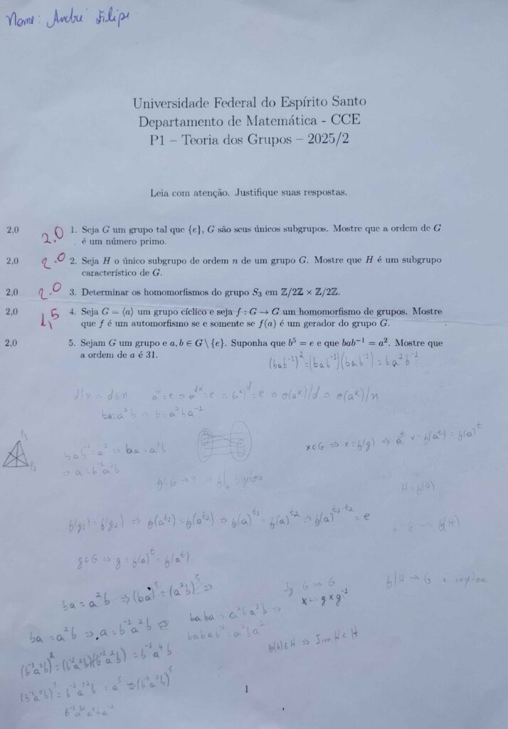 - Cálculo dos automorfismos de $\mathbb{Z}$ usando o resultado acima que caiu na P1.